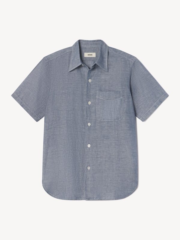The quintessential short sleeve button-up in a classic fit inspired by a 1940s uniform shirt from our archives. Cut from a lightweight cotton linen blend with a breathable open weave. Details include a perfectly-proportioned point collar, a single chest pocket, and a curved hem.
