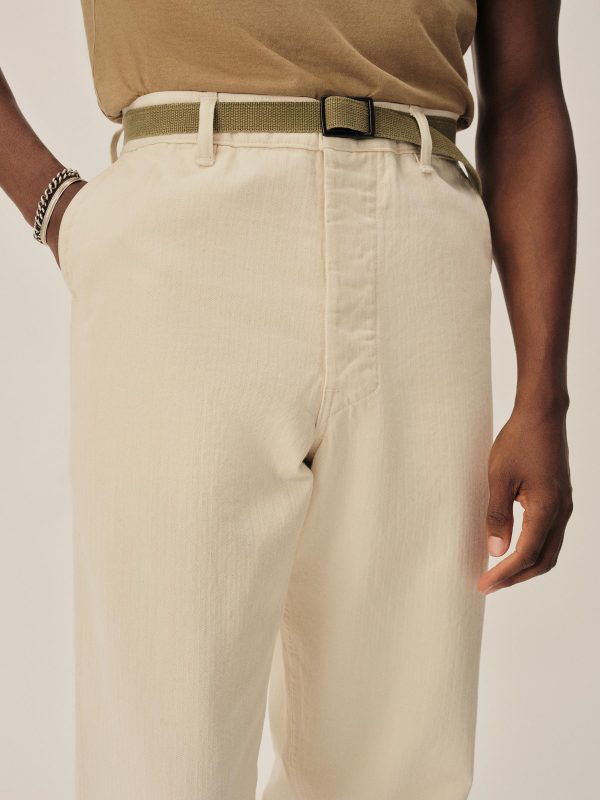 Based on 1940s USN dungarees, a work pant built from a yarn-dyed, 10 oz, 2×1 denim sourced from Collect Mill in Japan. Designed with stitch-through fatigue-style front pockets, patch back pockets, and a utilitarian construction throughout. Cut on the P-41 block for a historically grounded, archival fit.