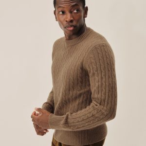 The California Cashmere Cable Crew is spun from 100% long-staple cashmere and knit in a refined 12-gauge cable pattern. Inspired by the casual poise of 1960s Ivy League sweaters, it’s finished with yarn-dyed ribbing at the neck, cuffs, and hem, and garment-rinsed for a soft, lived-in feel.