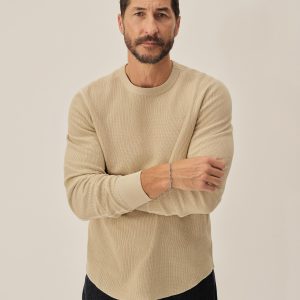 The California Cashmere Cable Crew is spun from 100% long-staple cashmere and knit in a refined 12-gauge cable pattern. Inspired by the casual poise of 1960s Ivy League sweaters, it’s finished with yarn-dyed ribbing at the neck, cuffs, and hem, and garment-rinsed for a soft, lived-in feel.