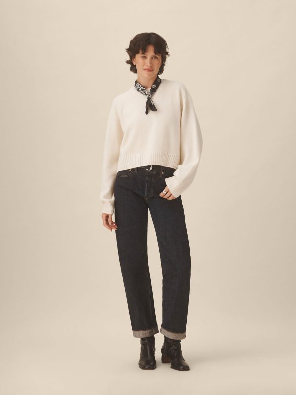A cozy crewneck crafted from 100% cashmere in a soft jersey stitch. Designed with a boxy, oversized silhouette and saddle-shaped armholes, and finished with ribbed trims at the neckline, cuffs, and hem.