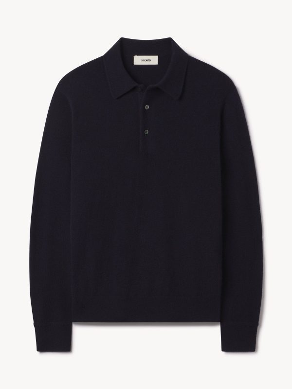 Slim fit long sleeve sweater polo in a 16 gauge jersey knit from yarn-dyed long staple cashmere. Details include a three-button placket with shell buttons and ribbing at the cuffs and hem. Constructed with hand-linked seams for durability.