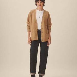 Inspired by vintage “grandfather” cardigans, a sweater made from 100% cashmere in a soft jersey stitch with natural drape and structure. Designed with an oversized fit and saddle armholes, it’s finished with rib trims at the cuffs and hem, functional buttons at the center front, and cleanly finished pockets.