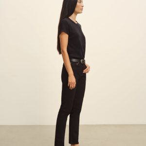 Designed for everyday wear or more polished styling, these mid-rise, slim-leg, ankle-length jeans are the definition of versatility. They’re cut from midweight 12 oz denim—with a hint of stretch for all-day comfort—and are finished with classic details like copper rivets, a metal tack button, and a zipper fly. Garment washed and dyed for a lived-in feel.