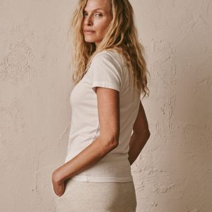 Slim fit crewneck tee cut from a supersoft 130 GSM blend of bamboo, cotton, and wool. Features a straight hem, a self bound neck, and raised armholes that hug the contours of the shoulders. Garment washed for a lived-in feel.