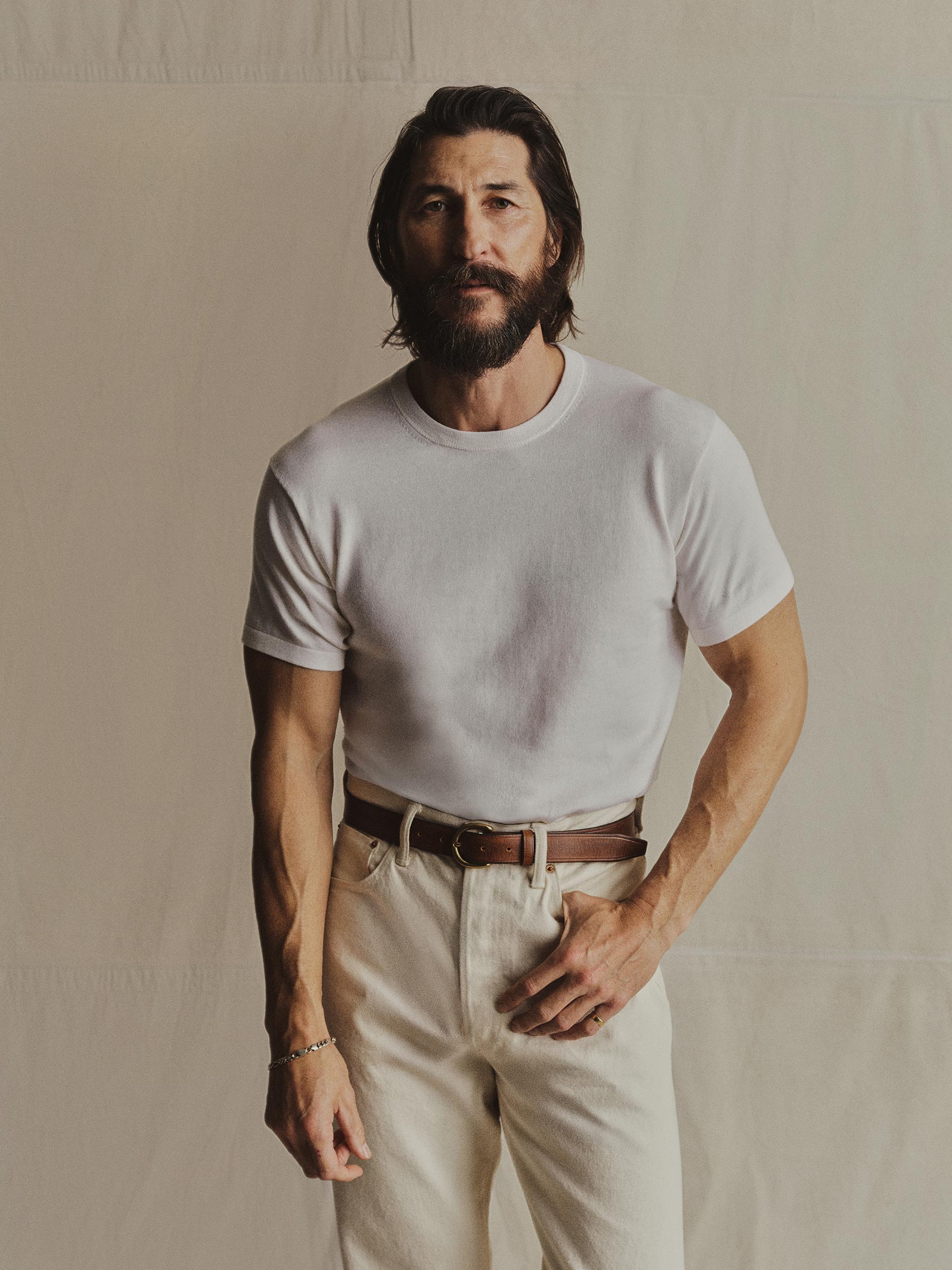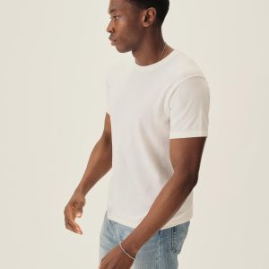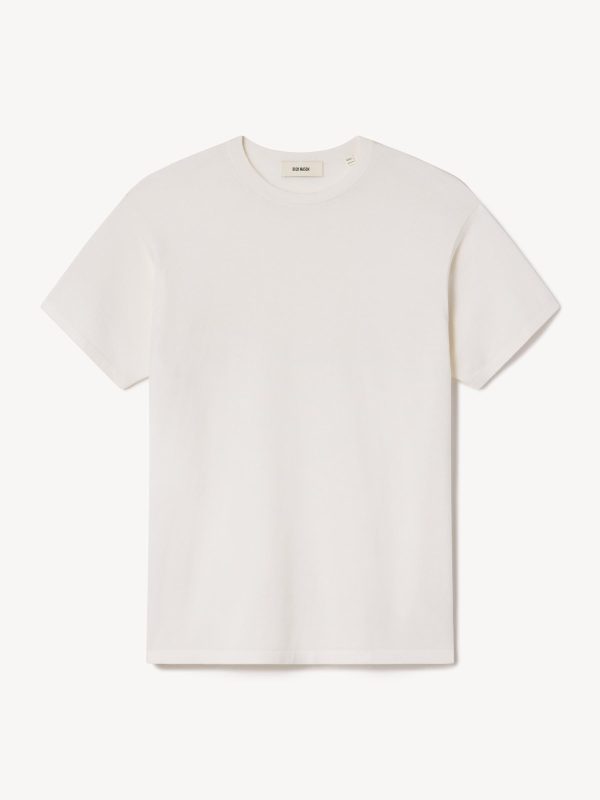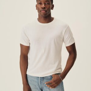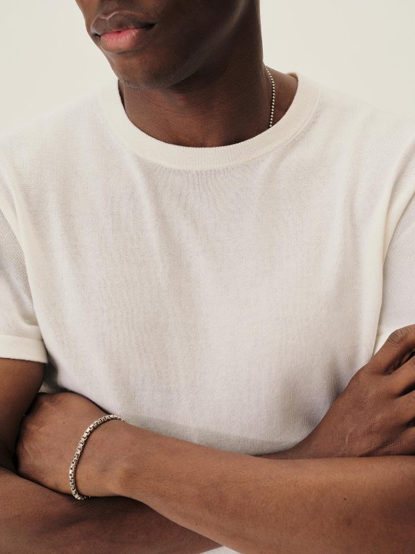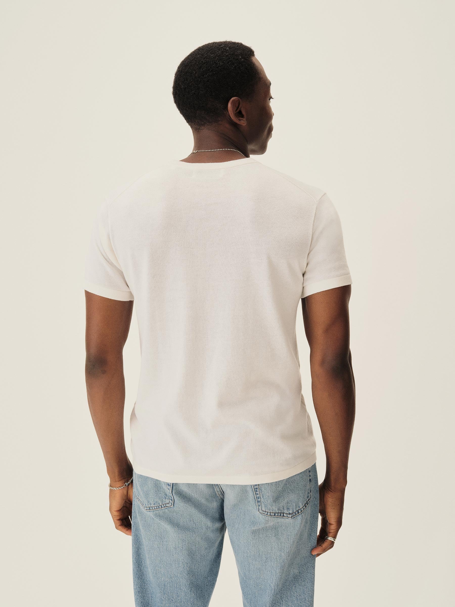 A fully fashioned tee that draws inspiration from the lifestyle surrounding Lake Como in the 1960s. Knit from an ultrafine blend of yarn-dyed organic Egyptian cotton and cashmere, spun in Italy. Featuring tubular finishes at the cuffs and bottom hem, and a shallow sleeve cap.