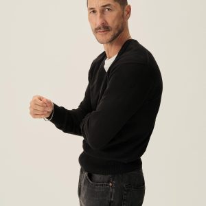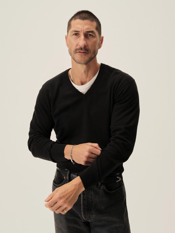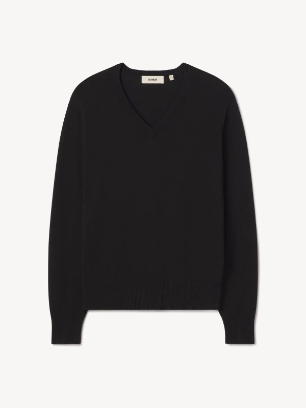 Classic-fit V-neck sweater, fully fashioned in the spirit of 1960s Lake Como. Knitted from an ultrafine blend of yarn-dyed organic Egyptian cotton and cashmere, spun in Italy. The sweater features a jersey body and sleeves with a rib-knit neckline, cuffs, and hem.