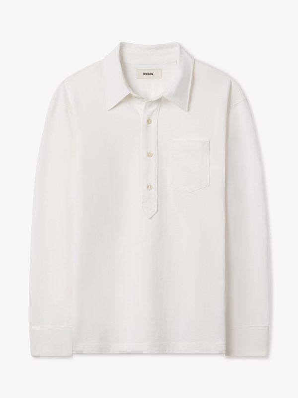 A popover shirt made from a midweight compact cotton jersey with a smooth, uniform texture and cool hand. It features a traditional shirt collar with a four-button half placket and single chest pocket. Ribbed sleeve cuffs.