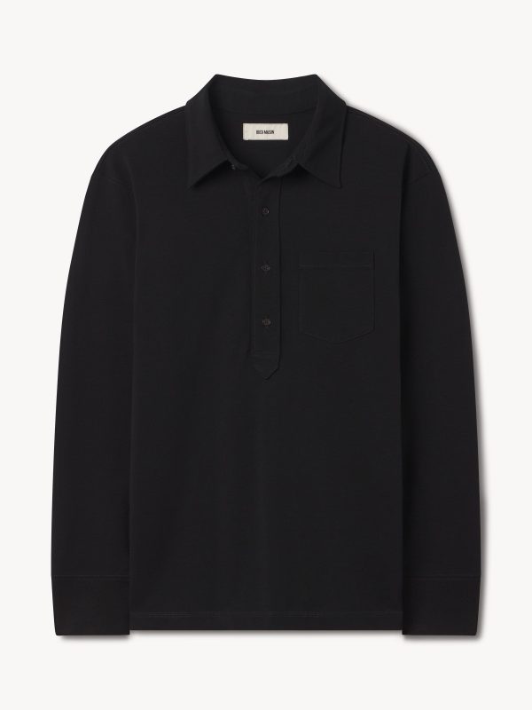 A popover shirt made from a midweight compact cotton jersey with a smooth, uniform texture and cool hand. It features a traditional shirt collar with a four-button half placket and single chest pocket. Ribbed sleeve cuffs.