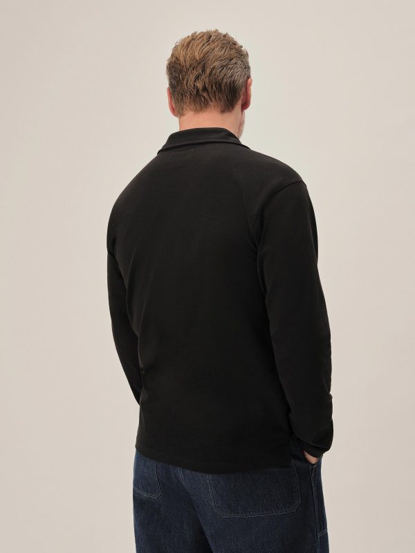 A popover shirt made from a midweight compact cotton jersey with a smooth, uniform texture and cool hand. It features a traditional shirt collar with a four-button half placket and single chest pocket. Ribbed sleeve cuffs.