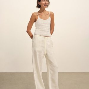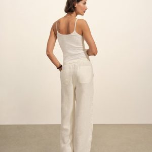 Easy wide-leg pull-on pant with a 29” inseam and an elasticated waistband that can be worn at the high-waist or low on the hip. Cut from 4.8 oz. linen plainweave. Features a cotton drawcord for fit adjustments, front slash pockets, and patch pockets at the back. Garment washed with softener for a lived-in feel.