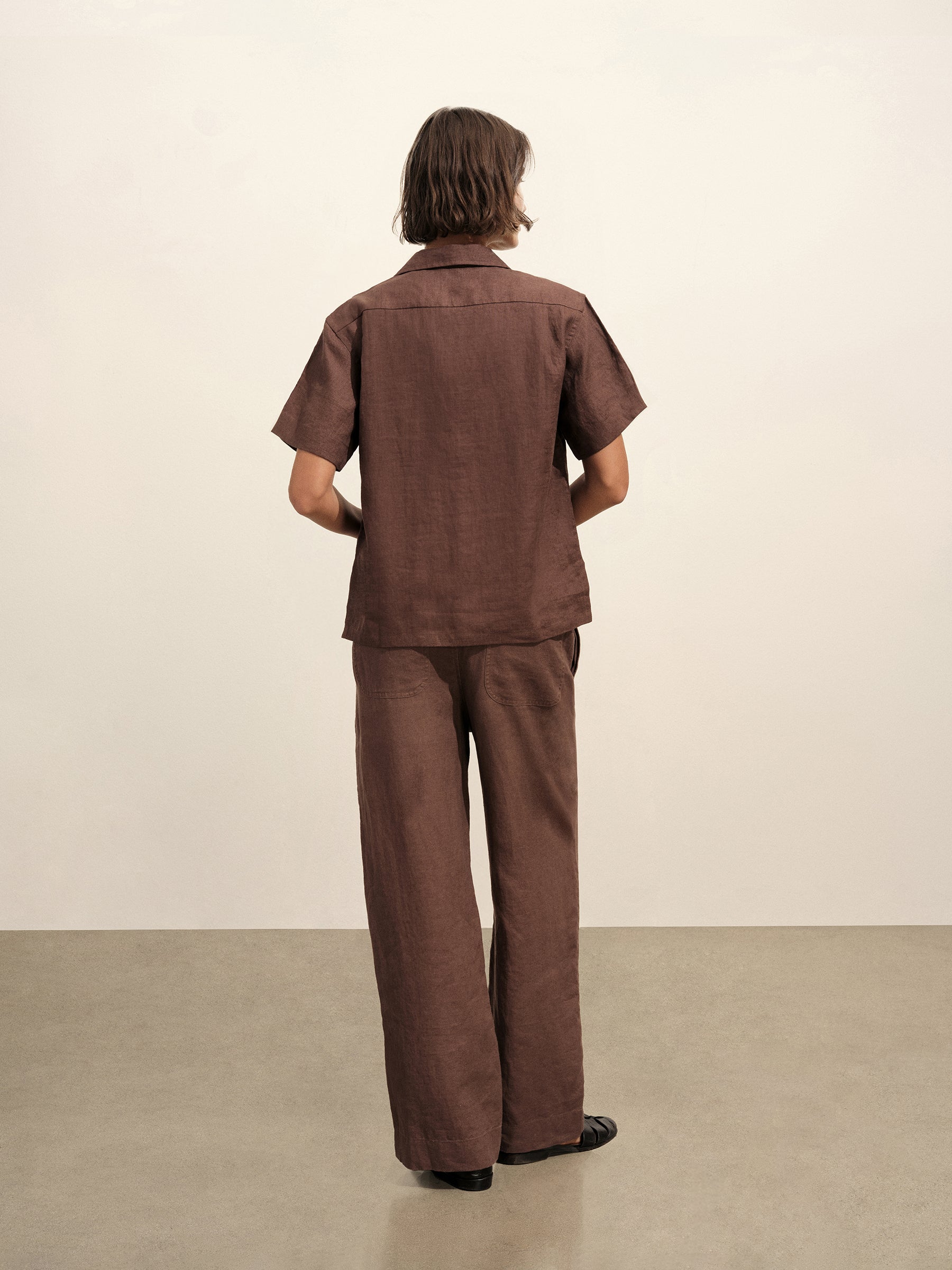 Easy wide-leg pull-on pant with a 29” inseam and an elasticated waistband that can be worn at the high-waist or low on the hip. Cut from 4.8 oz. linen plainweave. Features a cotton drawcord for fit adjustments, front slash pockets, and patch pockets at the back. Garment washed with softener for a lived-in feel.