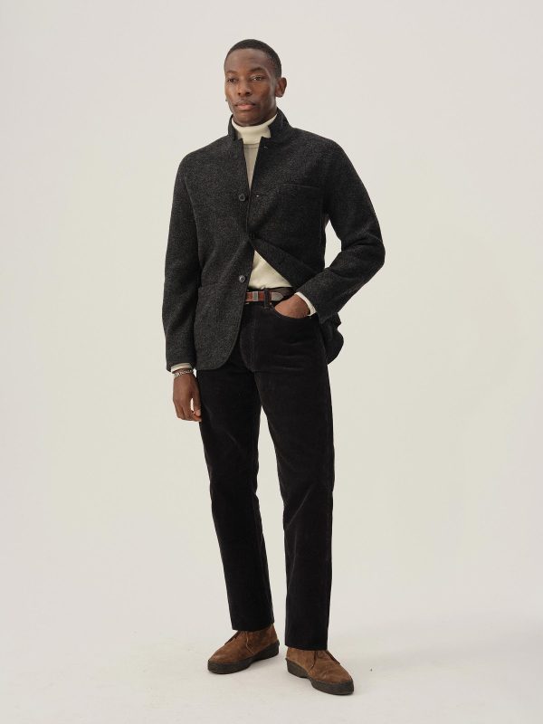Classic fit chore coat with a slimmer cut through the arms and room in the torso for layering. This 340 GSM felted merino wool has been twice boiled for improved insulation and durability. Details include three patch pockets, real horn buttons, and a notch collar. Constructed with hand-sewn facings and cover-stitching throughout.