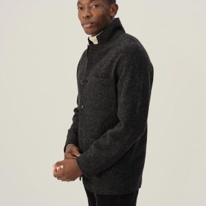 Classic fit chore coat with a slimmer cut through the arms and room in the torso for layering. This 340 GSM felted merino wool has been twice boiled for improved insulation and durability. Details include three patch pockets, real horn buttons, and a notch collar. Constructed with hand-sewn facings and cover-stitching throughout.