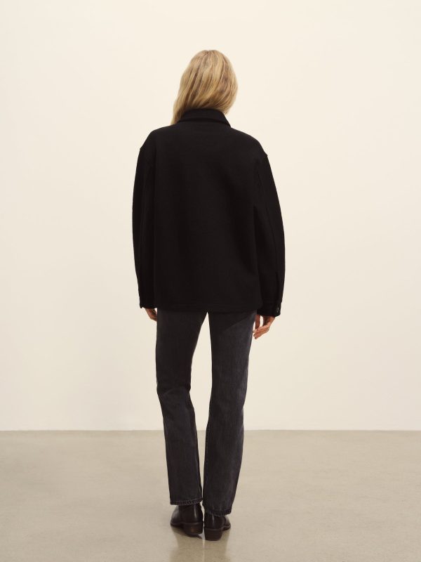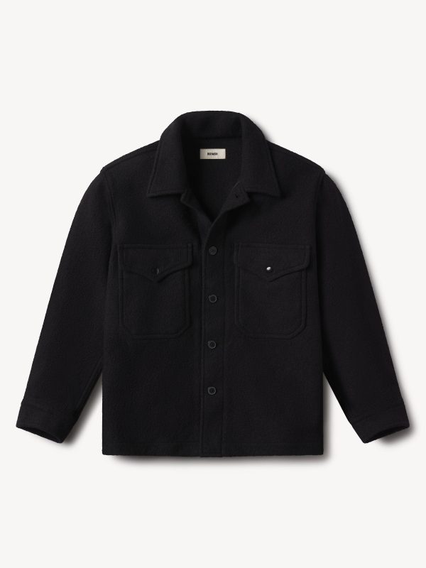 Relaxed field shirt with room to layer, cut from 340 GSM felted merino wool that’s been twice boiled for improved insulation. Details include patch-and-flap pockets and a straight, mid-length hem. Constructed with coverstitching throughout.