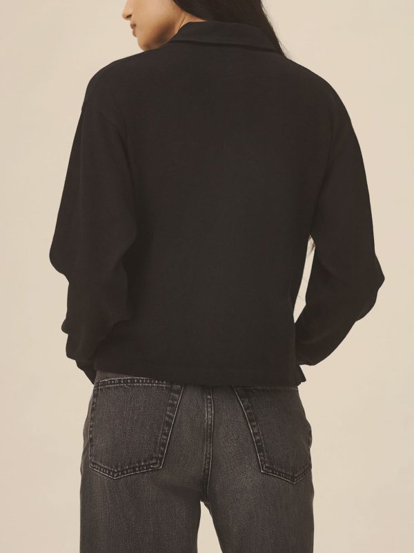 Inspired by the men’s Field-Spec Rugby, the women’s version is cut from 100% cotton in a dense slub jersey with a structured hand. Cut with a cropped, boxy fit and long sleeves, it’s designed with a woven twill collar and placket, tonal poly buttons at the center front, and herringbone-trimmed side slits.