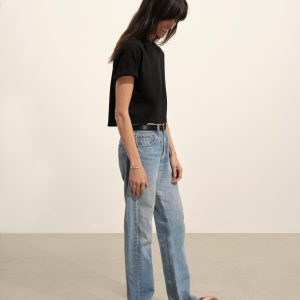 Cut from a heavyweight 310 GSM cotton, this slightly oversized, boxy crewneck tee has a straight hemline that hits right at your natural waist. Double-washed for a soft, smooth texture and consistent fit.