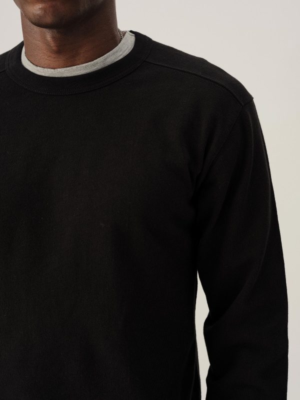A relaxed, long-sleeved, heavyweight cotton tee modeled after a vintage rugby shirt. The soft cotton jersey is about twice as heavy as our Pima tee, with tiny vertical ribs that gently glide across the skin. This is a solid, substantial stand-alone tee for cold weather.