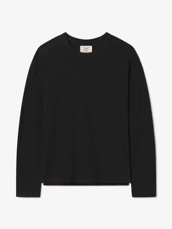 A relaxed, long-sleeved, heavyweight cotton tee modeled after a vintage rugby shirt. The soft cotton jersey is about twice as heavy as our Pima tee, with tiny vertical ribs that gently glide across the skin. This is a solid, substantial stand-alone tee for cold weather.