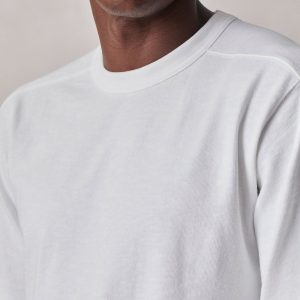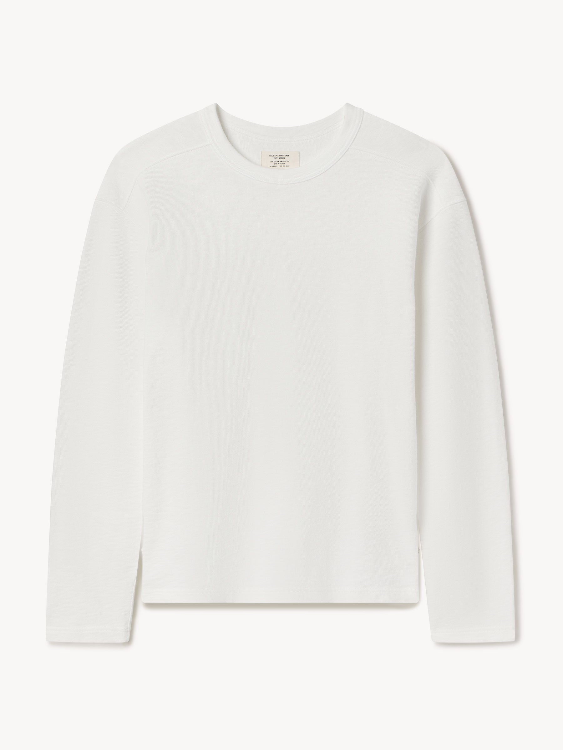 A relaxed, long-sleeved, heavyweight cotton tee modeled after a vintage rugby shirt. The soft cotton jersey is about twice as heavy as our Pima tee, with tiny vertical ribs that gently glide across the skin. This is a solid, substantial stand-alone tee for cold weather.