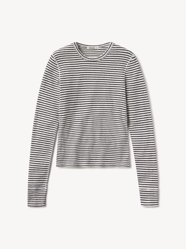 Crafted from a superfine, exceptionally soft cotton rib, this long sleeve is a go-to for effortless wear. It has a slim fit, a wide crewneck, cuffs, and a hip-length hem. Garment dyed and washed with softener for a lived-in feel.