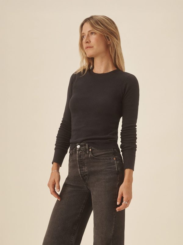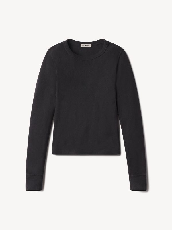 Crafted from a superfine, exceptionally soft cotton rib, this long sleeve is a go-to for effortless wear. It has a slim fit, a wide crewneck, cuffs, and a hip-length hem. Garment dyed and washed with softener for a lived-in feel.