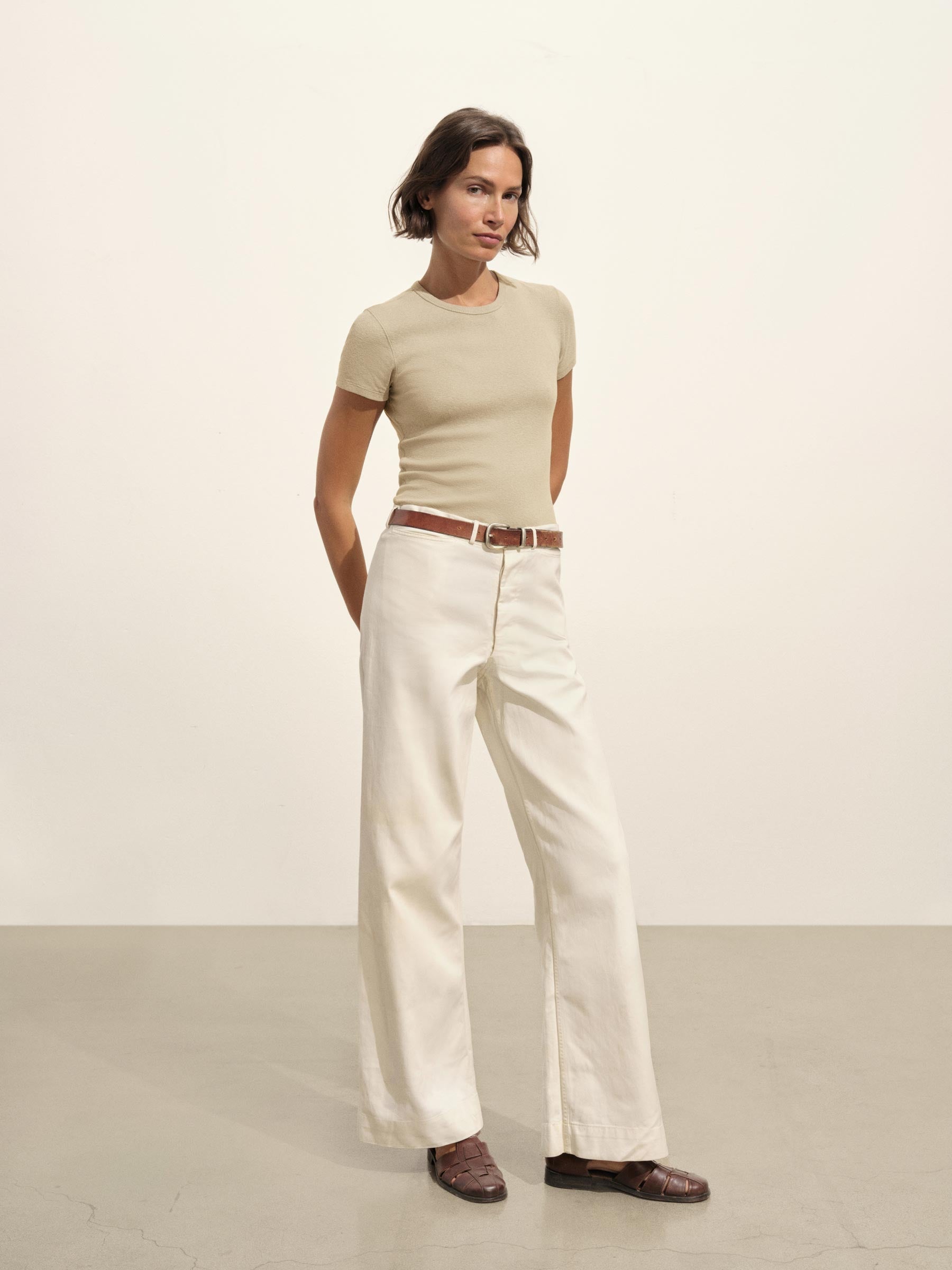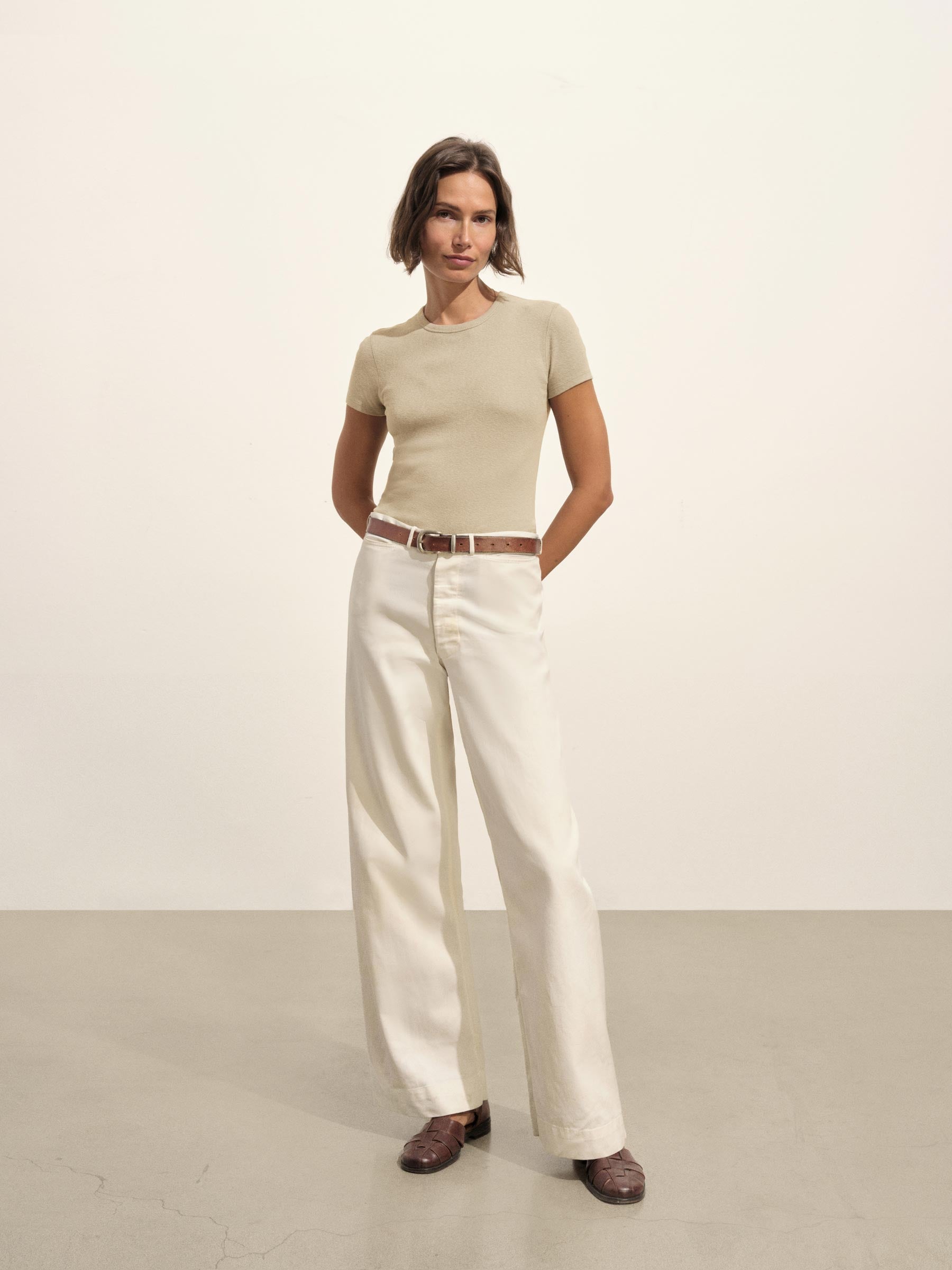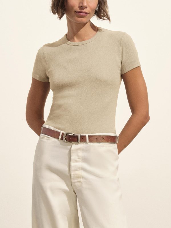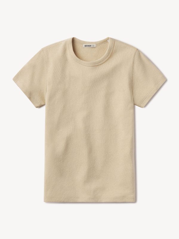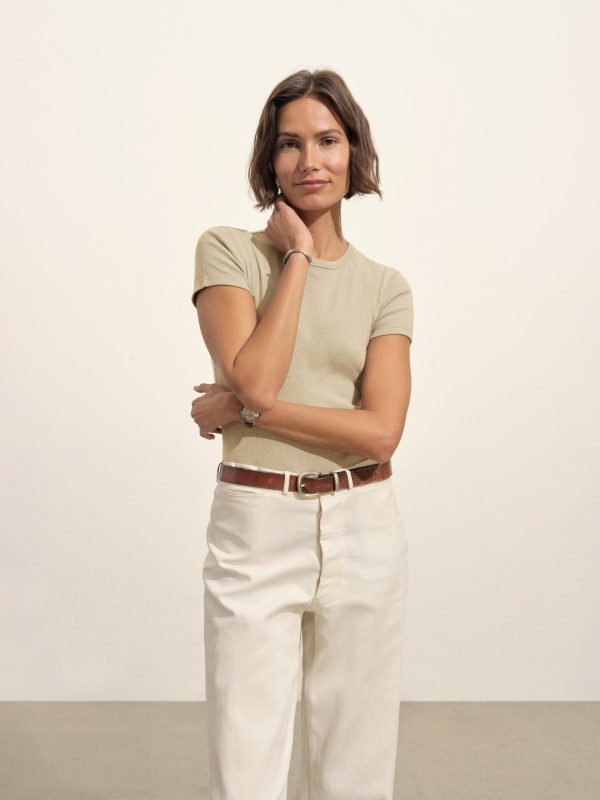 Our take on the classic baby tee, crafted from a superfine blend of new and recycled cotton with a subtle, textured rib. Garment washed for a lived-in look and feel.