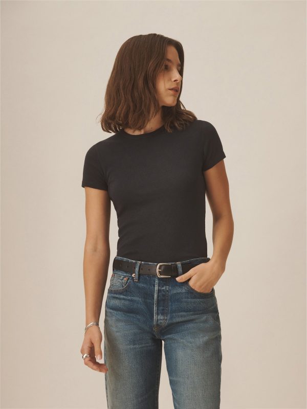 Our take on the classic baby tee, crafted from a superfine blend of new and recycled cotton with a subtle, textured rib. Garment washed for a lived-in look and feel.
