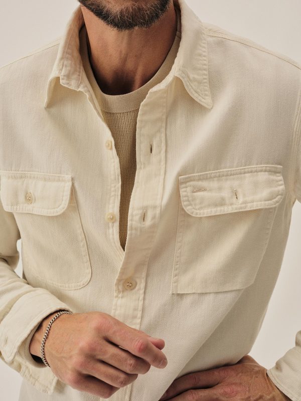 Born from the hardworking spirit of 1940s work shirts, the Soft Pack features a “cigarette pocket” at the chest and a narrow under-placket. Cut from a midweight, garment-dyed cotton/hemp HBT, and finished with a sun-fade effect, this shirt carries the weight of time.