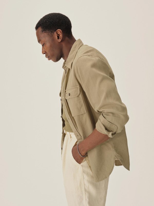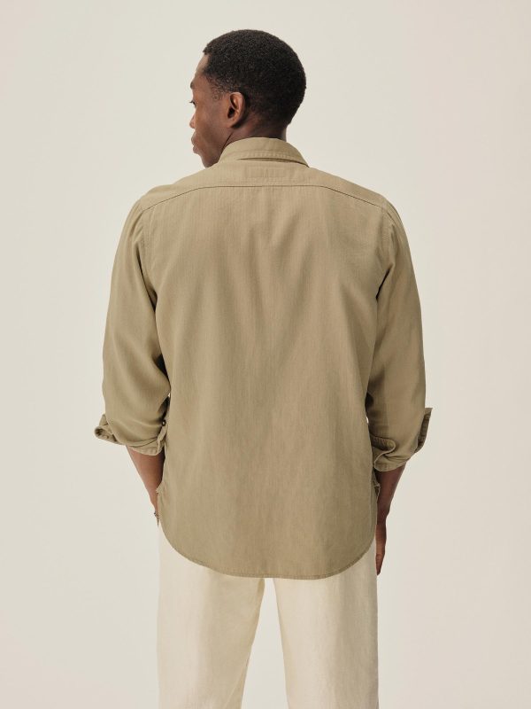 Born from the hardworking spirit of 1940s work shirts, the Soft Pack features a “cigarette pocket” at the chest and a narrow under-placket. Cut from a midweight, garment-dyed cotton/hemp HBT, and finished with a sun-fade effect, this shirt carries the weight of time.