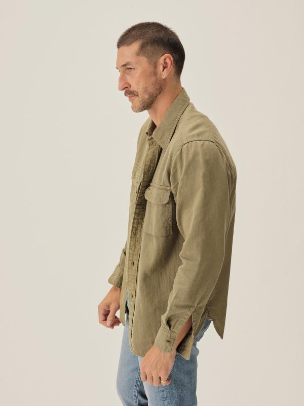 Born from the hardworking spirit of 1940s work shirts, the Soft Pack features a “cigarette pocket” at the chest and a narrow under-placket. Cut from a midweight, garment-dyed cotton/hemp HBT, and finished with a sun-fade effect, this shirt carries the weight of time.