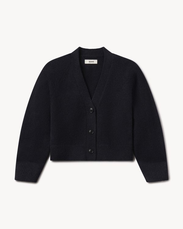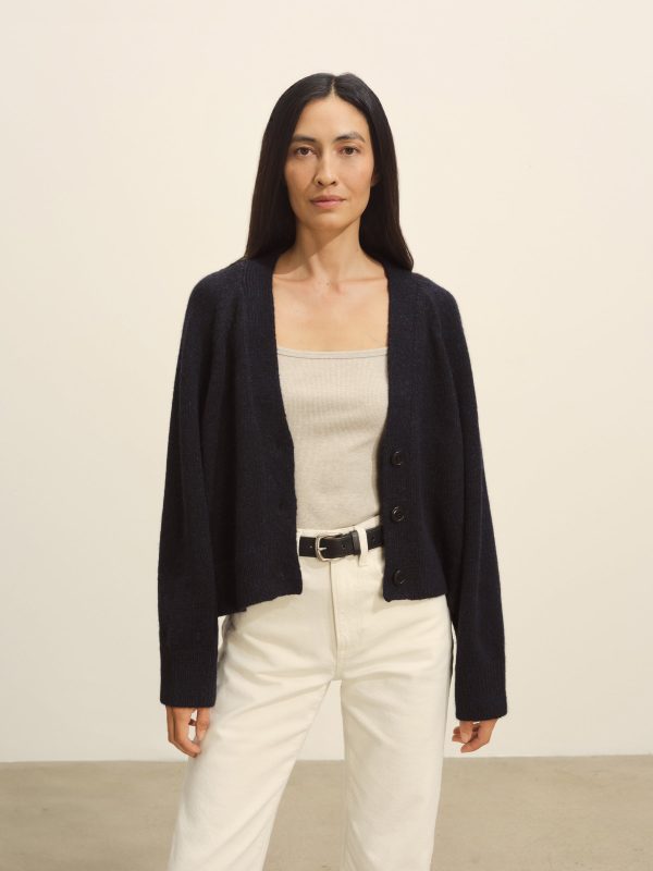 Crafted from a 5-gauge blend of Peruvian alpaca and merino wool, this cardigan has a soft finish and a substantial feel that’s prime for cool-weather outfitting. The boxy, cropped fit is complemented by a classic V-front, a three-button placket, and ribbing at the cuffs and hem.