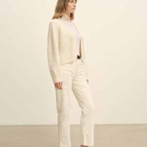 Crafted from a 5-gauge blend of Peruvian alpaca and merino wool, this cardigan has a soft finish and a substantial feel that’s prime for cool-weather outfitting. The boxy, cropped fit is complemented by a classic V-front, a three-button placket, and ribbing at the cuffs and hem.