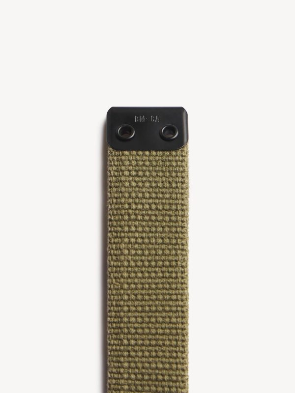 The Holdfast is modeled after the original U.S. Army “Mills” belt issued from 1904–1938 and commonly used through WWI. Cut from durable cotton webbing, it’s finished with a removable brass buckle for trimming to your exact fit or wearing long for a more relaxed style. Offered in alpha sizing, each belt can be easily customized to preference.