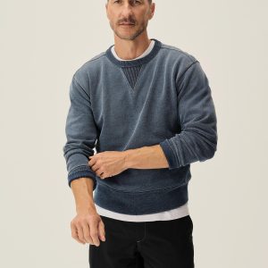 Indigo-Dipped Loopback Double V Crew Sweatshirt
