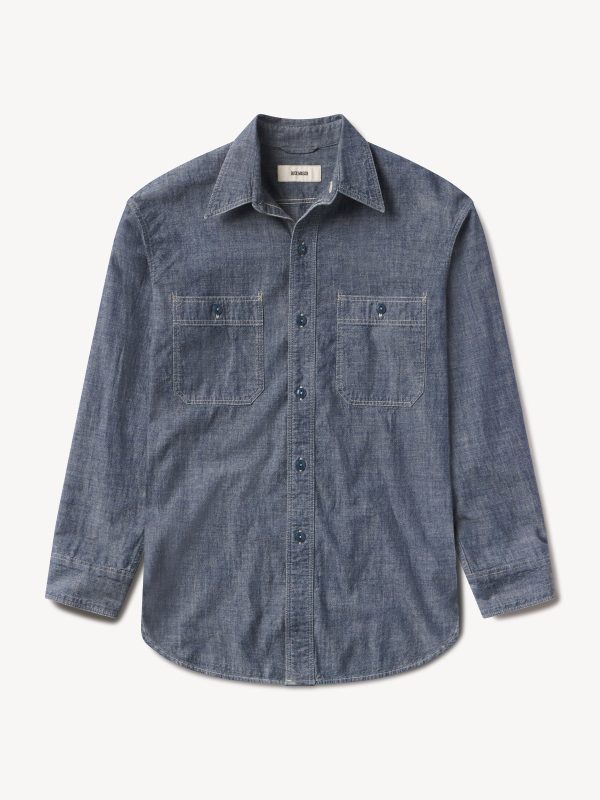 A work shirt cut from lightweight, yarn-dyed Japanese chambray. Modeled after 1950s workwear styles, it’s constructed with twin button-through chest pockets, durable felled seams, tonal 2-hole poly workwear buttons, and run-off stitching at the side gussets. Reinforced with discreet bartacks throughout.