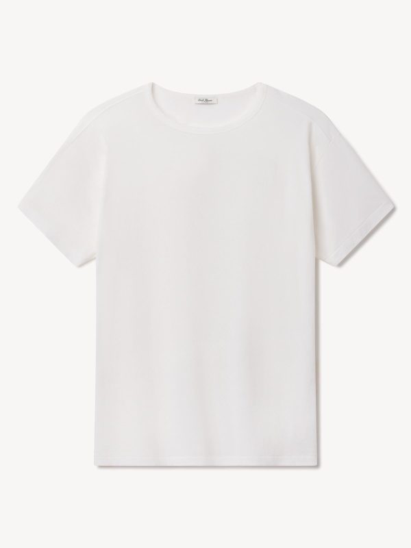 Crafted from a custom-spun, super fine 56 singles blended cotton-linen yarn, spun and knit exclusively in Japan. This fabric is designed to combine the smoothness of a premium yarn with the subtle texture of something more rugged. The result is a tee that’s smooth, cool, and light as air with a subtle silky hand feel. Finished with a rib-bound crewneck, blind hems at the sleeves and bottom, and overlocked seams.