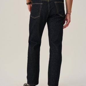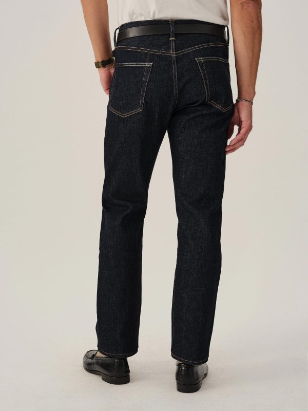 A classic 5-pocket jean in our Ford Standard fit: mid-rise, straight through the thighs with a taper below the knee. Inspired by our favorite vintage jeans, this 14 oz denim from Japan-based Kaihara mills has a hint of stretch and an organic texture that develops more character with every wear. Garment rinsed for a lived-in feel. Details include copper rivets and a metal tack button fly.