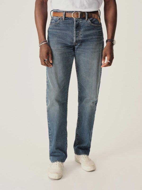 A classic 5-pocket jean in our Ford Standard fit: mid-rise, straight through the thighs with a taper below the knee. Inspired by our favorite vintage jeans, this 14 oz denim from Japan-based Kaihara mills has a hint of stretch and an organic texture that develops more character with every wear. Garment rinsed for a lived-in feel. Details include copper rivets and a metal tack button fly.