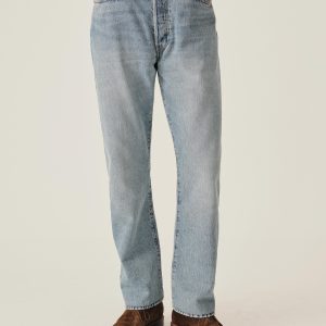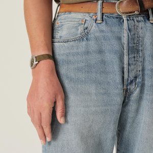 A classic 5-pocket jean in our Full Saddle fit: high-rise with a straight fit through the thigh and leg. This Japanese denim develops more character with every wear. Garment rinsed for a lived-in feel. Details include copper rivets and a metal tack button fly.