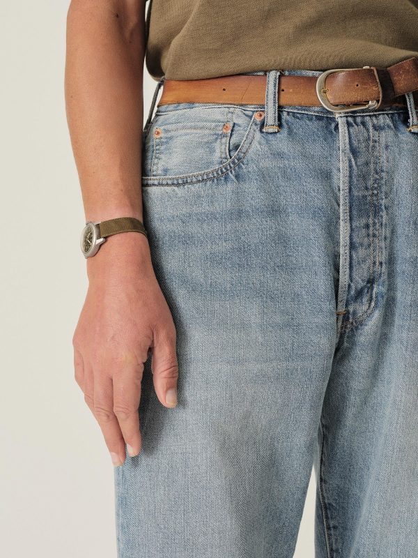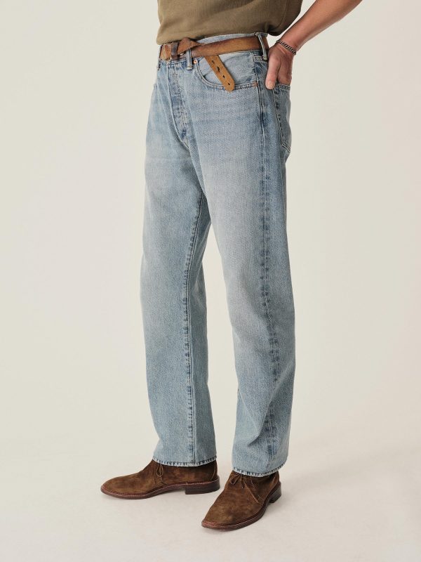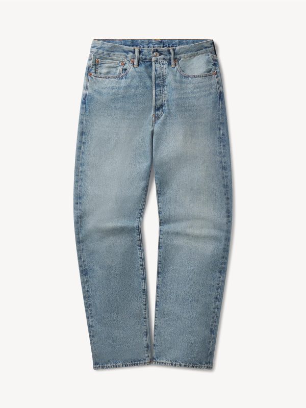 A classic 5-pocket jean in our Full Saddle fit: high-rise with a straight fit through the thigh and leg. This Japanese denim develops more character with every wear. Garment rinsed for a lived-in feel. Details include copper rivets and a metal tack button fly.