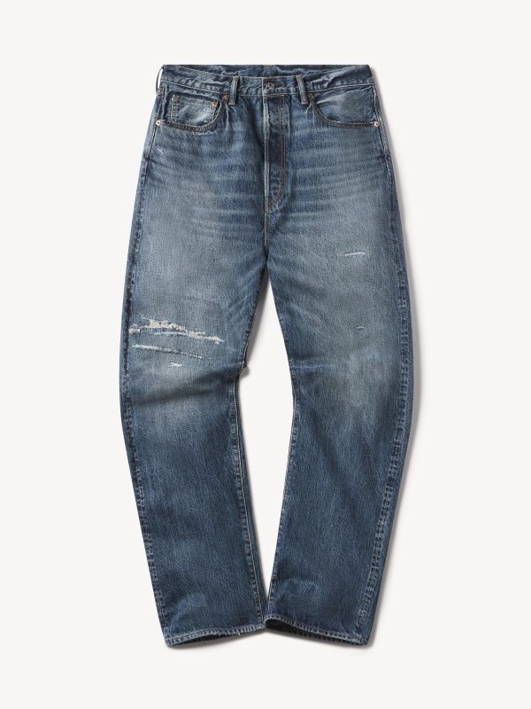 A classic 5-pocket jean in our Full Saddle fit: high-rise, straight through the thigh and leg. Inspired by blue jeans from the 1940s through the 1960s, this shuttle loomed 14 oz. selvedge denim is unsanforized, and has an organic texture that develops more character with every wear. Garment rinsed for a lived-in feel. Details include copper rivets and a metal tack button fly.
