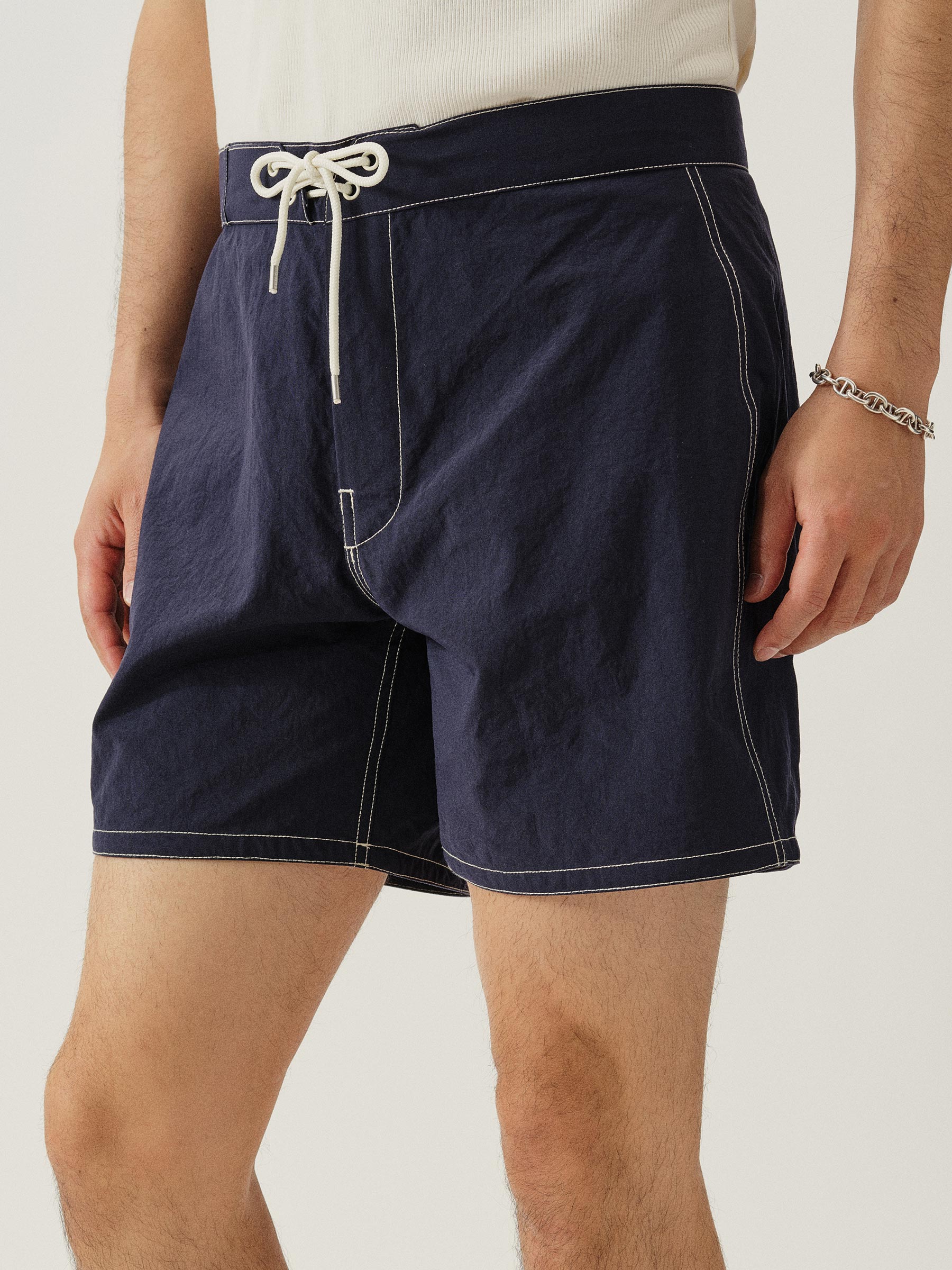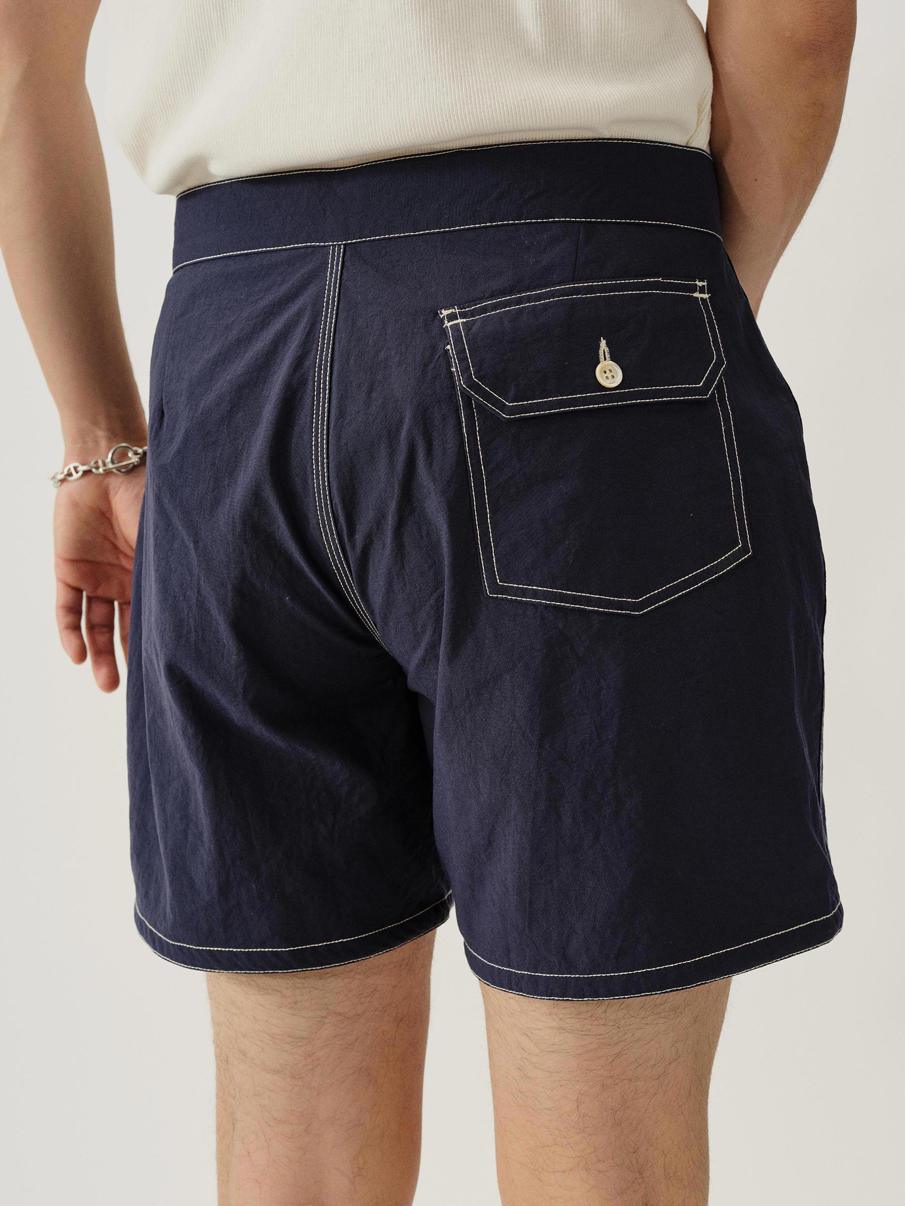 Inspired by the boardshorts of the 1960s, our boardshorts are made from lightweight 100% nylon fabric. They have a front tie closure to help adjust the fit and a single buttoned back pocket. 6-inch inseam.