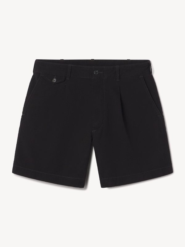 A single-pleat short named after the Parisian tailor who popularized pleated pants in the early 20th century. Cut in a relaxed, classic fit with a high rise, the single reverse pleat adds volume for a more comfortable silhouette. Made from 100% Japanese cotton herringbone. Features include two front slash pockets, two welt back pockets, and a buttoned coin pocket. 6” inseam. Washed for a lived-in feel.