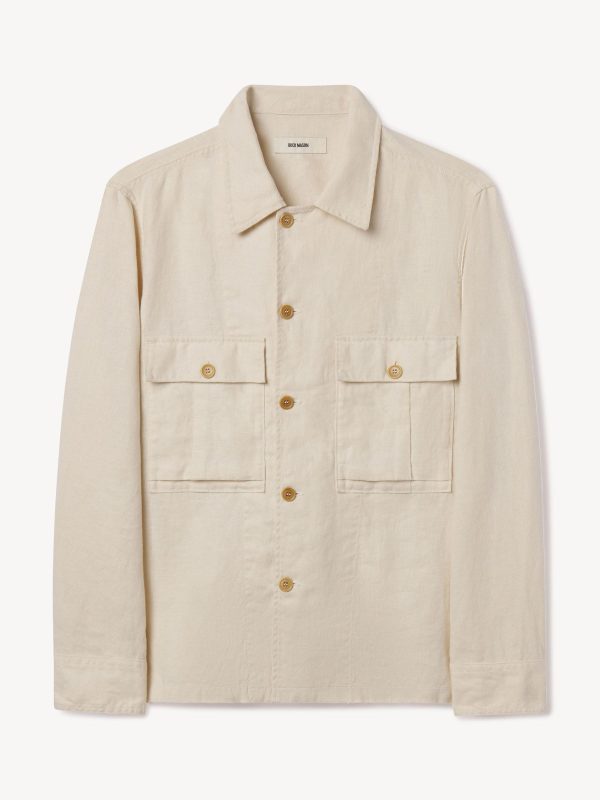 A full fitting fatigue overshirt cut from loose knit mid-weight linen. Details include a vintage-inspired point collar, bellows pocket, and flat-felled double needle seams, which is the same construction we use on our jeans. We sourced larger-than-average flax fibers configured in a loose weave, which gives this shirt a subtle grain and lightweight feel.