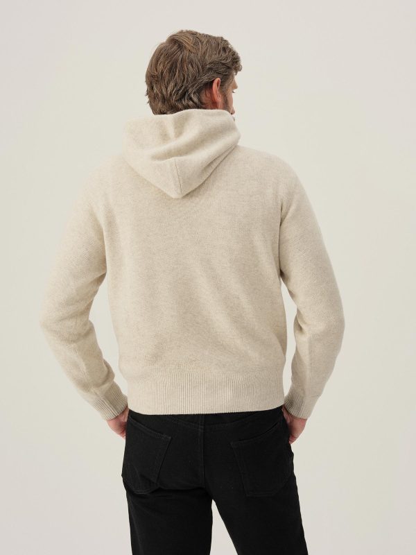 Classic fit hooded sweater in a 9 gauge plaited jersey knit with a merino wool/cashmere face and looped merino wool back. Features a kangaroo pocket and ribbing at the cuffs and hem. Constructed with hand-linked seams for durability.