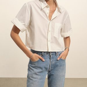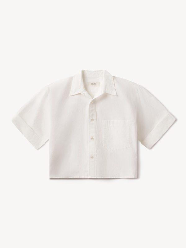 Our Mainstay button-down shirt, reimagined for summer with a 20 ¼” cropped body and rolled sleeves, cut from a lightweight, 2.8 oz. cotton weave. Featuring felled seams and a back yoke with a box pleat. Finished with mother of pearl buttons and garment washed for a broken-in feel.