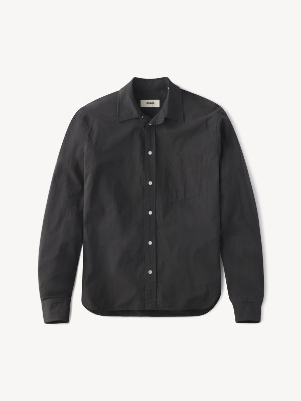 Relaxed button-down shirt in 3.7 oz. cotton plainweave. 29.5” length hits just below the hip. Details include a back yoke with box pleat, a single spade pocket, and pleated cuffs. Inspired by mid-century men’s shirting, this piece can be worn on its own, layered over a tee, or paired with our Rider Pant. Garment washed with softener for a lived-in feel.