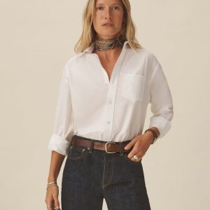 Relaxed button-down shirt in 3.7 oz. cotton plainweave. 29.5” length hits just below the hip. Details include a back yoke with box pleat, a single spade pocket, and pleated cuffs. Inspired by mid-century men’s shirting, this piece can be worn on its own, layered over a tee, or paired with our Rider Pant. Garment washed with softener for a lived-in feel.