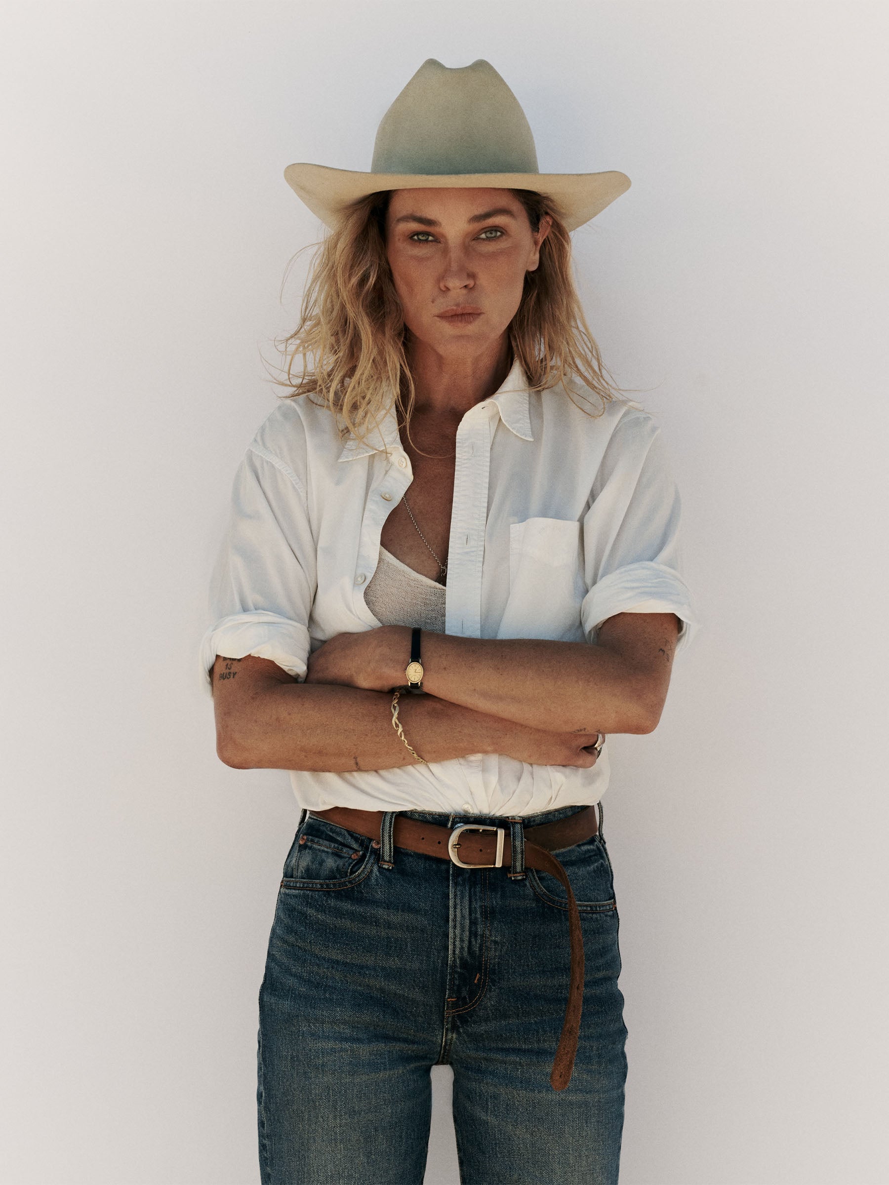 Relaxed button-down shirt in 3.7 oz. cotton plainweave. 29.5” length hits just below the hip. Details include a back yoke with box pleat, a single spade pocket, and pleated cuffs. Inspired by mid-century men’s shirting, this piece can be worn on its own, layered over a tee, or paired with our Rider Pant. Garment washed with softener for a lived-in feel.